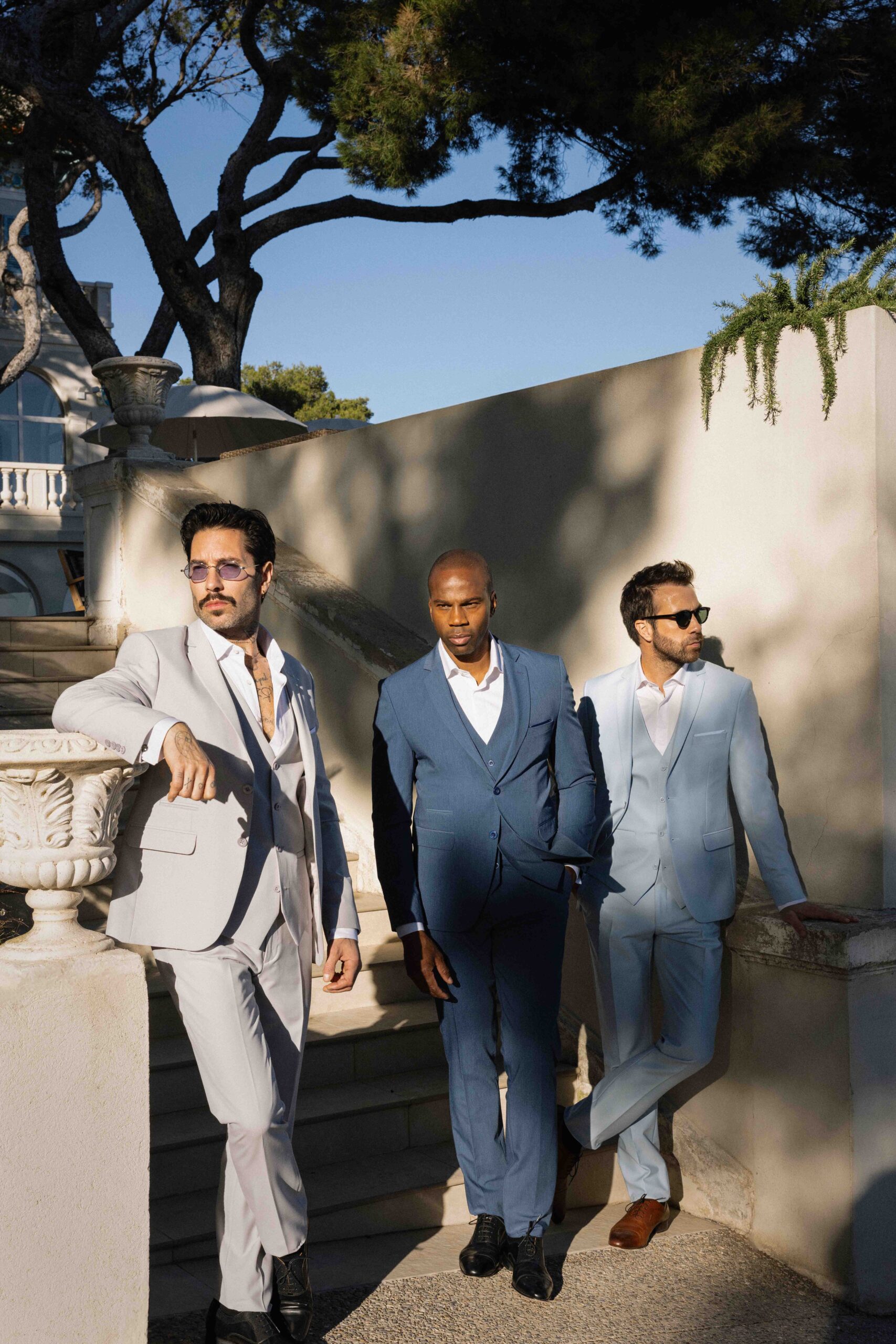 Avec sa veste à col cranté et son gilet droit, il propose une silhouette fluide et équilibrée. Facile à porter, ce costume mise sur le confort et la liberté de mouvement, tout en conservant une allure soignée. Sa coupe moderne convient à toutes les morphologies et s’adapte aussi bien au marié qu’au cortège.