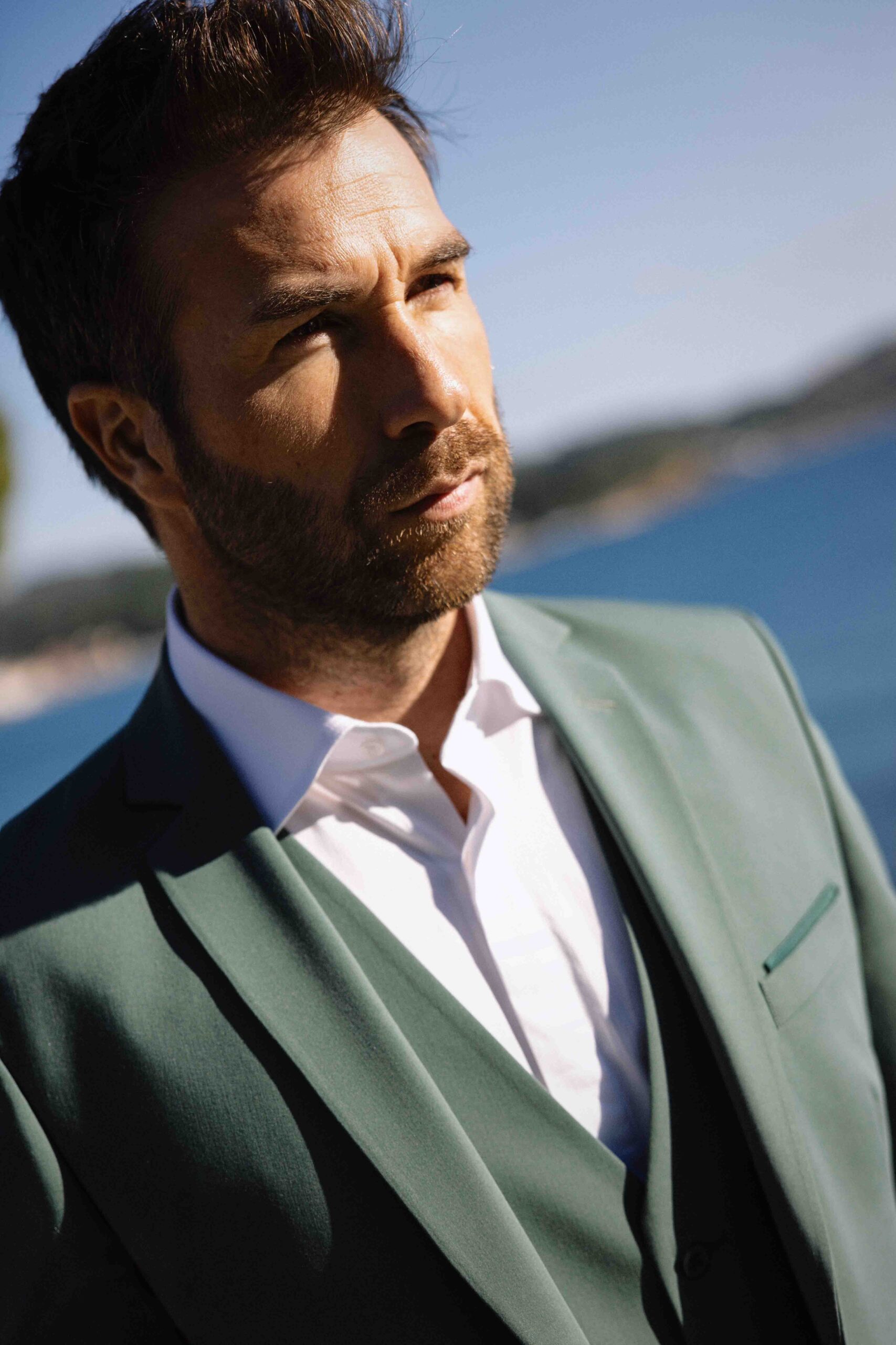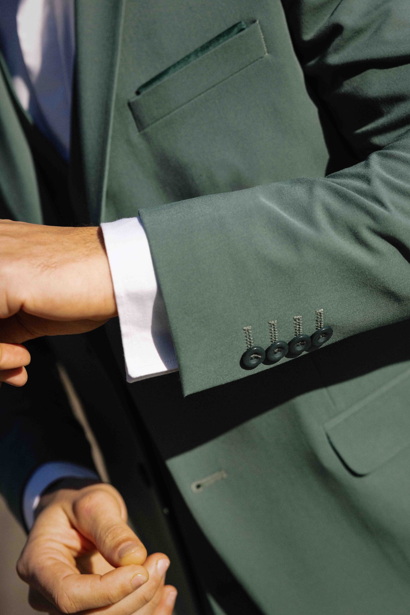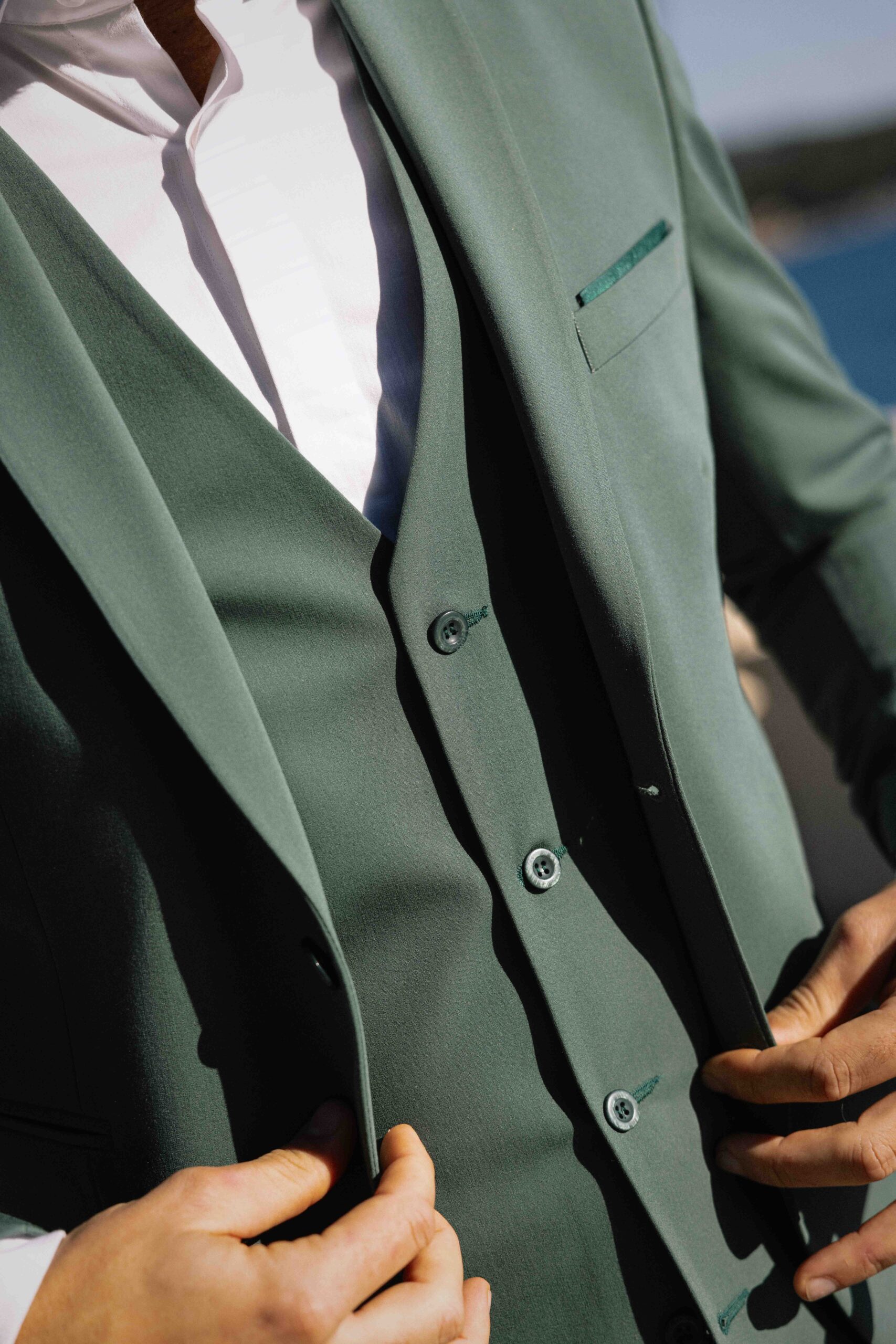Le costume Ajax vert chlorophylle est un costume 3 pièces à l’esprit doux et contemporain.