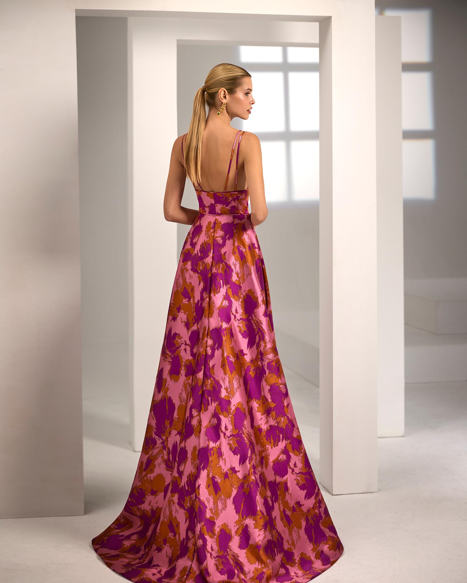 Robe longue en brocart, symbole de raffinement et d’élégance. Son décolleté en V met en valeur le buste avec féminité, tandis que les doubles bretelles délicates apportent une touche moderne et structurée. Le dos ouvert sublime la silhouette avec sensualité et légèreté, créant un équilibre parfait entre audace et sophistication. Confectionnée dans un brocart riche et texturé, cette robe offre une allure majestueuse.