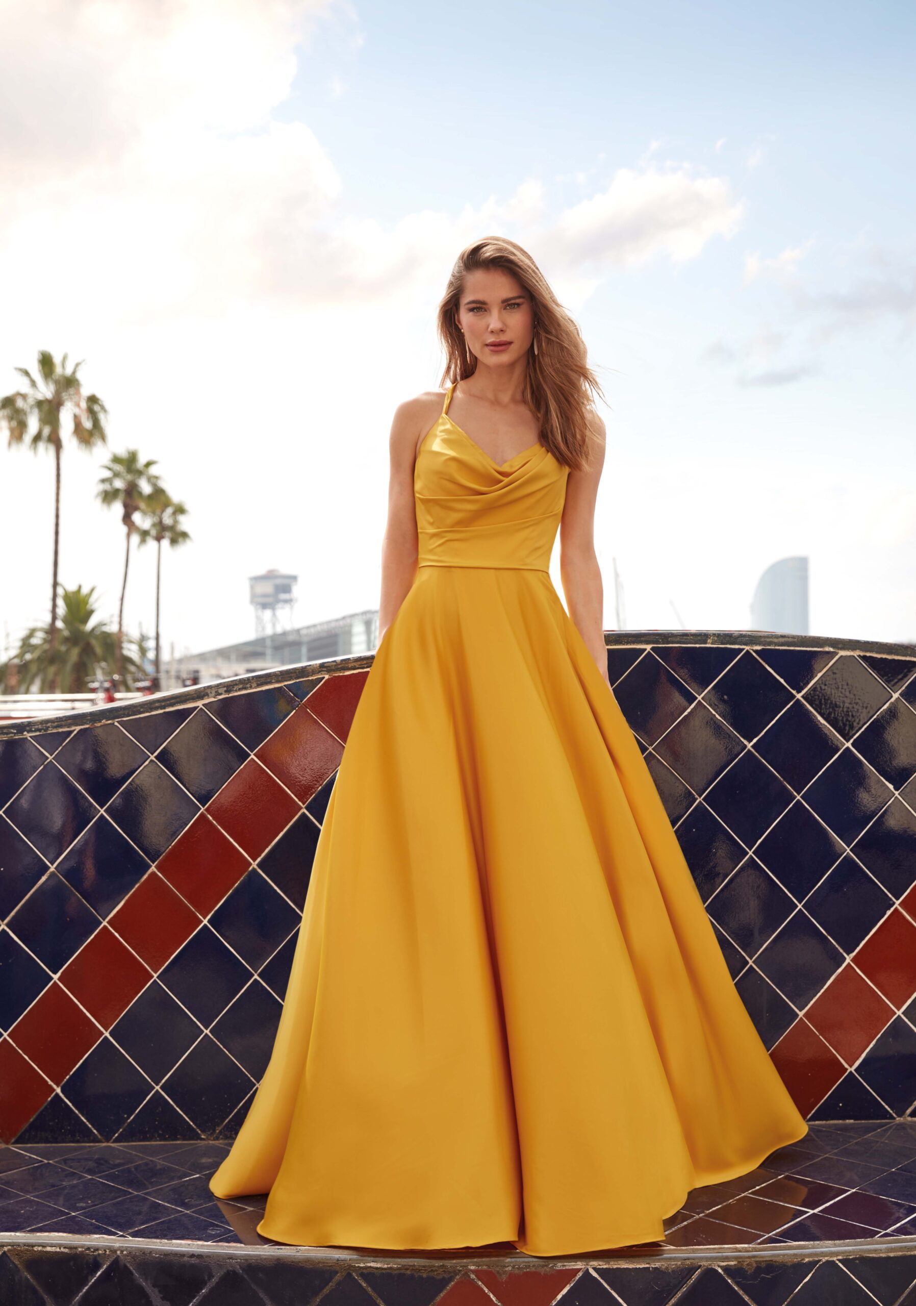 Cette robe longue séduit par son élégance intemporelle et sa teinte dorée chaleureuse qui illumine le teint. Son décolleté délicatement drapé apporte une touche de féminité et de douceur, tandis que les fines bretelles soulignent avec finesse les épaules et le port de tête.