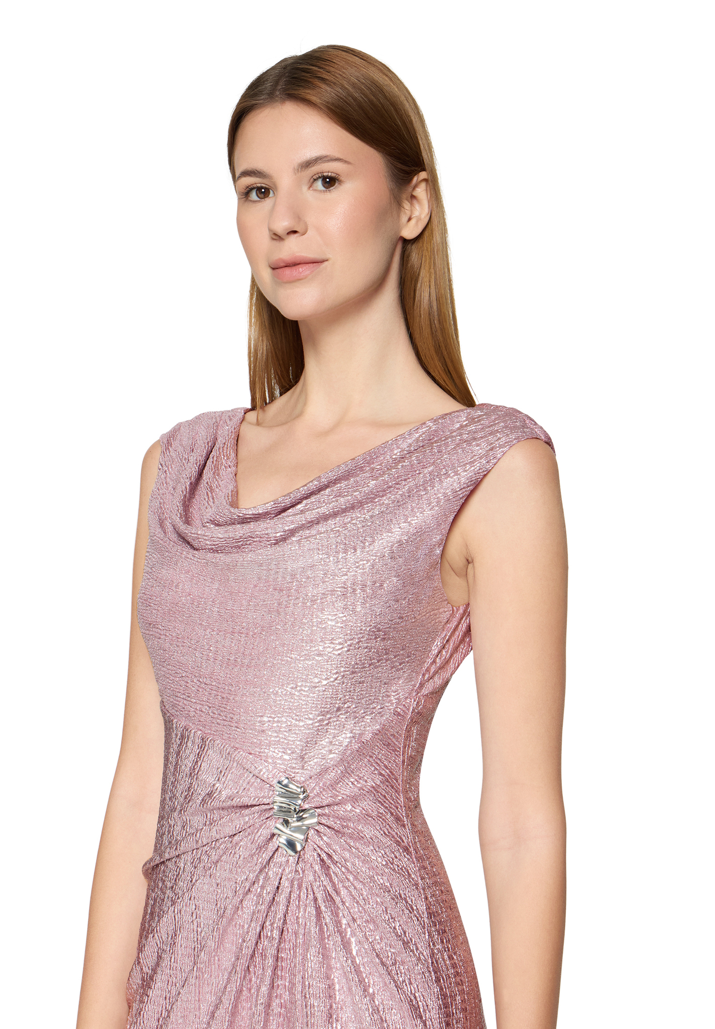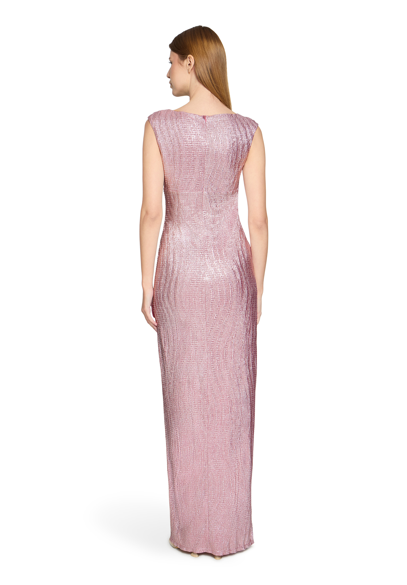 Robe longue scintillante au drapé élégant, idéale pour une cérémonie chic et raffinée.