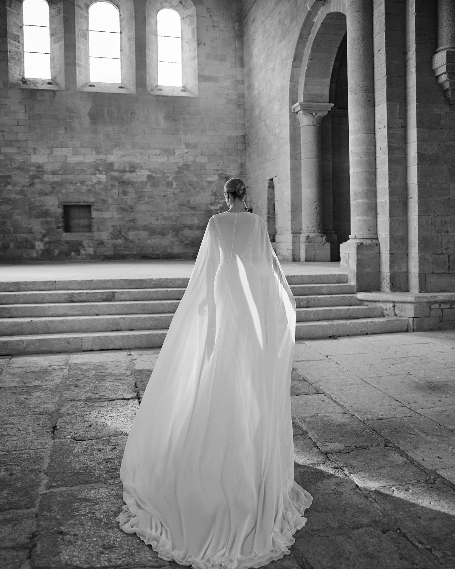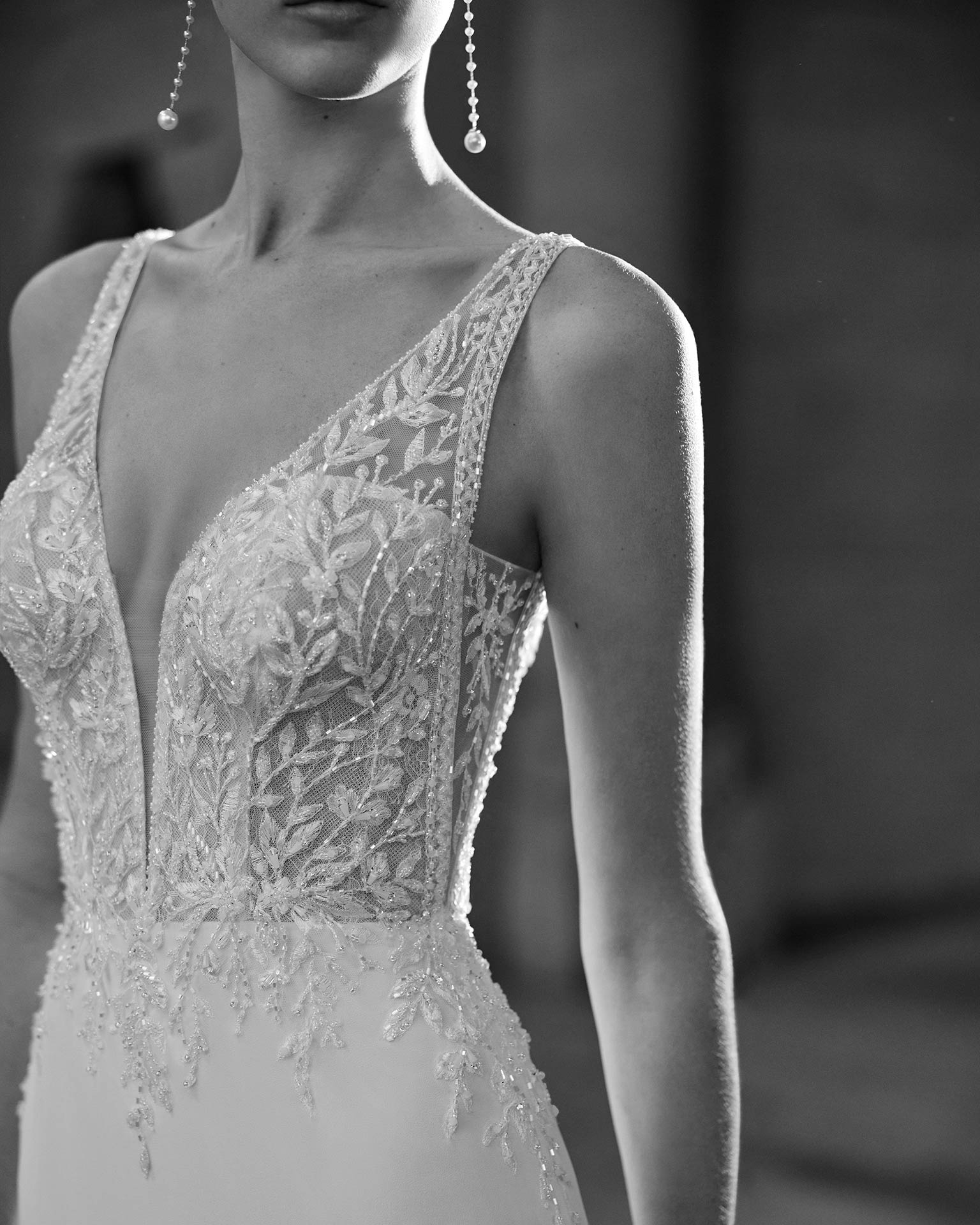 La robe de mariée LIDAV de Rosa Clará séduit par son élégance délicate et son style raffiné. Confectionnée en georgette fluide, elle offre une silhouette légère et féminine. Son corsage en dentelle est sublimé par de fines bretelles, apportant douceur et sophistication. Le dos plongeant, orné de bretelles décorées de perles, ajoute une touche précieuse et lumineuse à cette création pleine de charme.