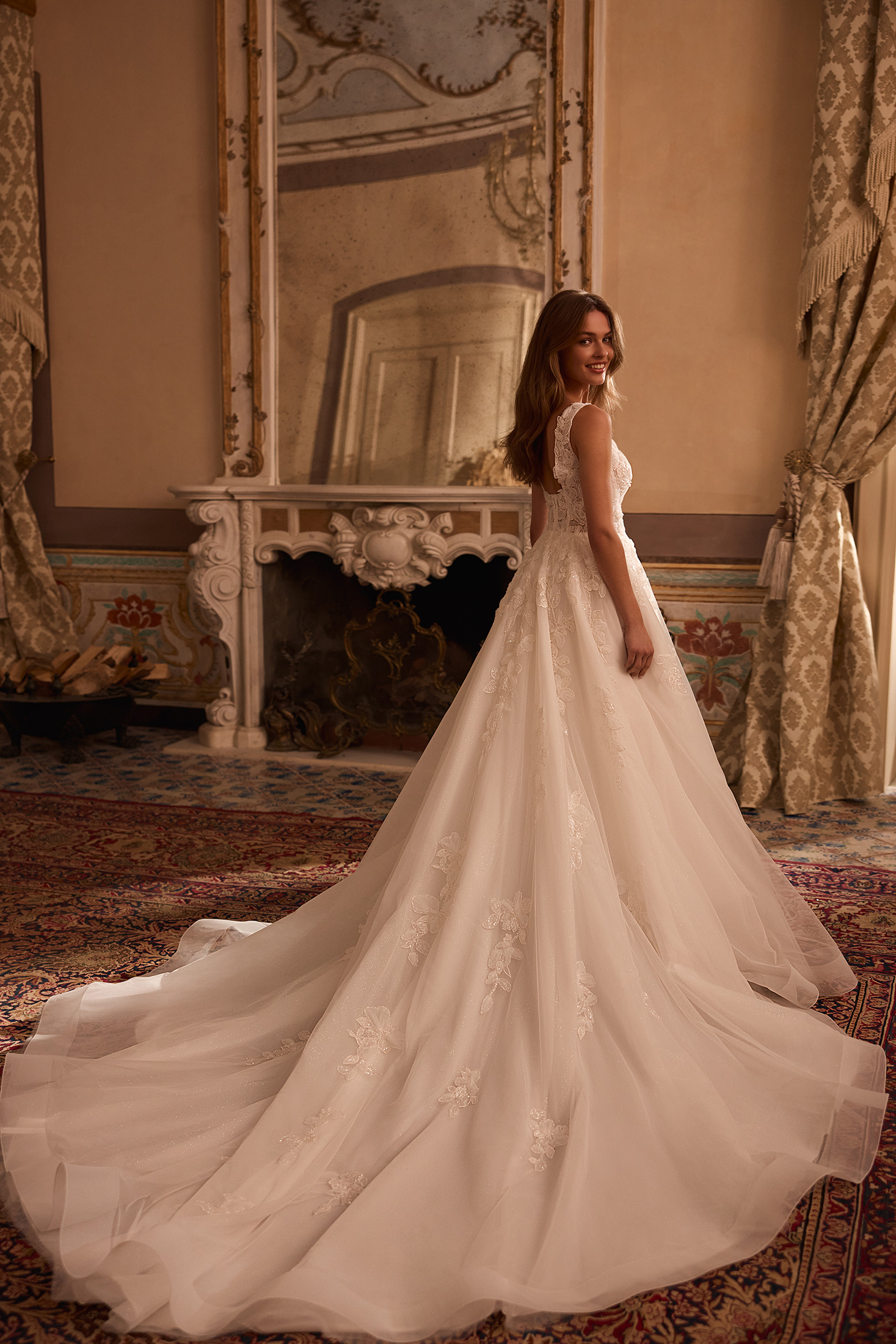 La robe Tonia est un véritable rêve pour la mariée romantique et attachée à l’élégance classique.
